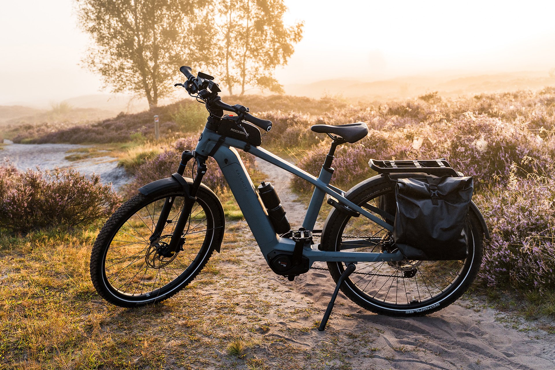 Ganz so einfach war der Umstieg für ihn allerdings nicht: Anskar fährt nämlich nicht nur zum Bäcker oder zum Bahnhof – er fährt, um zu arbeiten. Und sein „Werkzeug“ wiegt schnell bis zu 20 Kilo: Kameras, Objektive, Stativ, Akkus, je nach Trip auch Laptop oder Drohne. Genau deshalb musste sein neues Setup mehr können als ein normales Fahrrad: stabil bleiben, wenn’s beladen ist, genug Platz fürs Gepäck bieten – und ihn so entlasten, dass er am Spot nicht schon erschöpft ankommt. „Ich wollte nicht am Ziel kaputt ankommen“, sagt der Fotograf. Die Lösung fand er bei Kalkhoff: ein E-Bike mit hohem zulässigem Gesamtgewicht, das Fahrer:in und Gepäck souverän trägt, statt nur „irgendwie“ mitzuschleppen. Seine Wahl fiel deshalb auf das aktuelle KALKHOFF ENTICE 5+ ADVANCE.